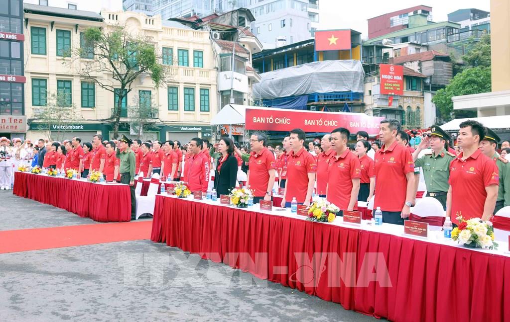 Các đại biểu cùng cán bộ, chiến sĩ Công an nhân dân và người dân hưởng ứng Ngày chạy Olympic 2026 "Vì sức khoẻ toàn dân - Vì an ninh Tổ quốc". Ảnh: Phạm Kiên - TTXVN