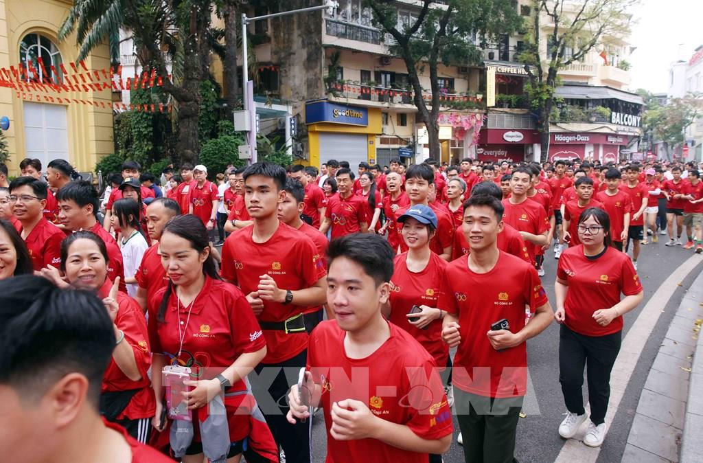 Các đại biểu cùng cán bộ, chiến sĩ Công an nhân dân và người dân chạy hưởng ứng Ngày chạy Olympic 2026 "Vì sức khoẻ toàn dân - Vì an ninh Tổ quốc". Ảnh: Phạm Kiên - TTXVN