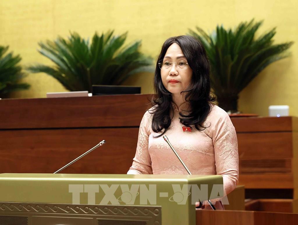 Bộ trưởng Bộ Văn hóa, Thể thao và Du lịch Lâm Thị Phương Thanh trình bày Tờ trình về dự thảo Nghị quyết của Quốc hội về một số cơ chế, chính sách đột phá phát triển văn hoá Việt Nam. Ảnh: An Đăng - TTXVN