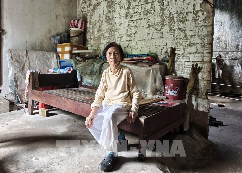 Bà Hồ Thị Ngọc Bình (80 tuổi, hộ nghèo tại Tổ dân phố số 4, phường Cẩm Lệ) muốn bán một phần đất để có tiền sửa nhà và lo tuổi già, nhưng không được bán vì vướng quy hoạch “treo”. Ảnh: Quốc Dũng - TTXVN