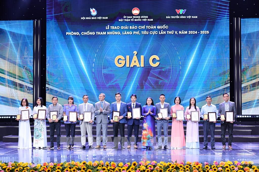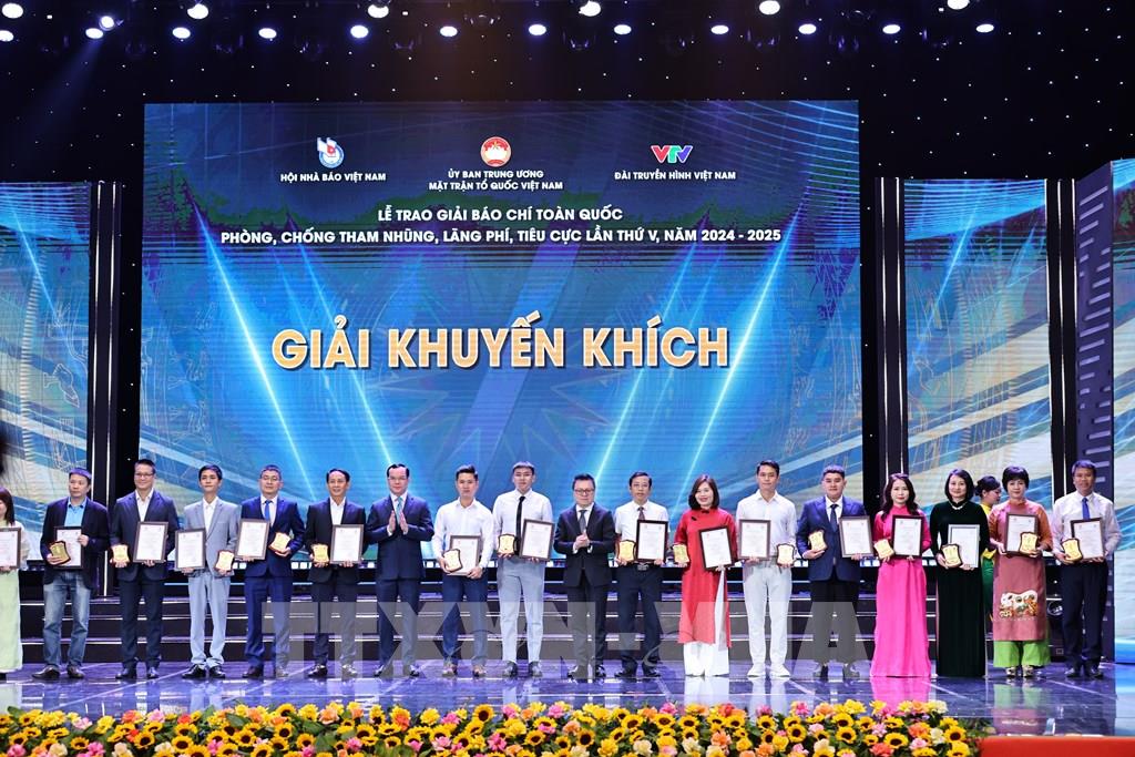 Cùng dự có các đồng chí: Ủy viên Bộ Chính trị, Bí thư Trung ương Đảng, Trưởng Ban Nội chính Trung ương, Phó Trưởng ban thường trực Ban Chỉ đạo Trung ương về phòng, chống tham nhũng, lãng phí, tiêu cực Phan Đình Trạc; Ủy viên Bộ Chính trị, Bí thư Trung ương Đảng, Chủ tịch Ủy ban Trung ương MTTQ Việt Nam, Ủy viên Ban Chỉ đạo Trung ương về phòng, chống tham nhũng, lãng phí, tiêu cực, Trưởng ban Chỉ đạo Giải báo chí toàn quốc phòng, chống tham nhũng, lãng phí, tiêu cực Đỗ Văn Chiến; Phó Chủ tịch nước Võ Thị Ánh Xuân; các đồng chí Ủy viên Trung ương Đảng, Ủy viên dự khuyết Trung ương Đảng, lãnh đạo các ban, bộ, ngành, MTTQ Việt Nam ở Trung ương và Hà Nội; đại diện lãnh đạo các cơ quan báo chí ở Trung ương và địa phương, cùng các tác giả/nhóm tác giả có tác phẩm được vinh danh trong Lễ trao giải. Tại buổi lễ, 4 tác phẩm đoạt giải A đã được trao, đó là loạt 3 bài "Cựu chiến binh bền bỉ chống 'Giặc nội xâm'" của tác giả Đỗ Phú Thọ đăng trên Báo Cựu chiến binh Việt Nam; loạt 5 bài "Chống lãng phí trong lĩnh vực khoa học, công nghệ" của nhóm tác giả: Nguyễn Thị Hồng, Nguyễn Văn Lộc đăng trên Báo điện tử Kiểm toán; tác phẩm "Làm gì với trụ sở dôi dư?" của nhóm tác giả: Mai Kiều Tuyết, Tăng Thị Hải Hà, Nguyễn Thi Yên phát sóng trên VOV giao thông, Đài Tiếng nói Việt Nam; tác phẩm "Nghịch lý đầu tư xử lý rác thải bằng công nghệ" của nhóm tác giả: Xuân Dung, Liên Liên, Linh Thủy, Quý Thông, Duy Công, Minh Đức, Đình Hưng phát sóng trên VTV1, Đài Truyền hình Việt Nam. Cùng đó, Ban tổ chức đã trao 10 giải B; 12 giải C; 18 giải Khuyến khích cho các tác giả. Tại Giải, Thông tấn xã Việt Nam có một tác phẩm đoạt giải B, đó là tác phẩm Mega Story đặc biệt "Chống lãng phí đất đai - Tinh gọn bộ máy: 'Cuộc cách mạng cấp thiết để đất nước vươn mình'" của nhóm tác giả: Võ Mạnh Hùng, Nguyễn Hoài Nam, Đoàn Minh Anh đăng trên Báo điện tử VietnamPlus.Theo đánh giá của Hội đồng chung khảo, sau 2 năm triển khai, tính đến hết ngày 31/7/2025, Ban Tổ chức Giải đã tiếp nhận 1.110 tác phẩm báo chí gửi tham dự thuộc 4 thể loại: báo In, báo Điện tử, Phát thanh, Truyền hình của 90 cơ quan báo chí ở Trung ương và địa phương. Với tinh thần dân chủ, khách quan, công tâm, trách nhiệm cao, các thành viên Hội đồng Chung khảo đã xem xét, thống nhất lựa chọn được 44 tác phẩm xuất sắc nhất để trao giải.