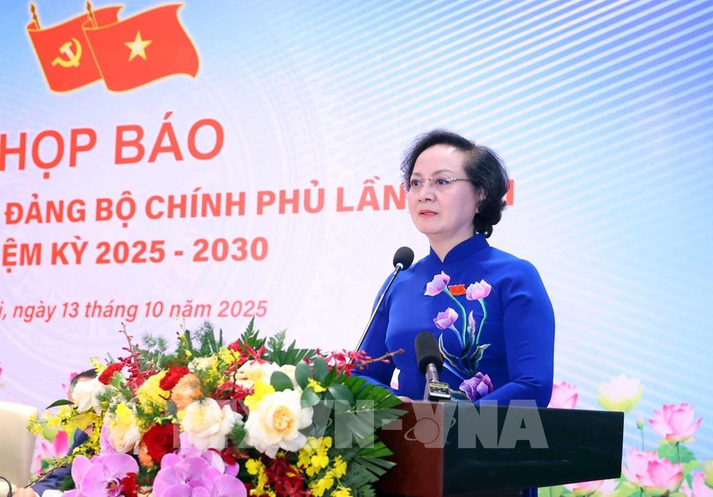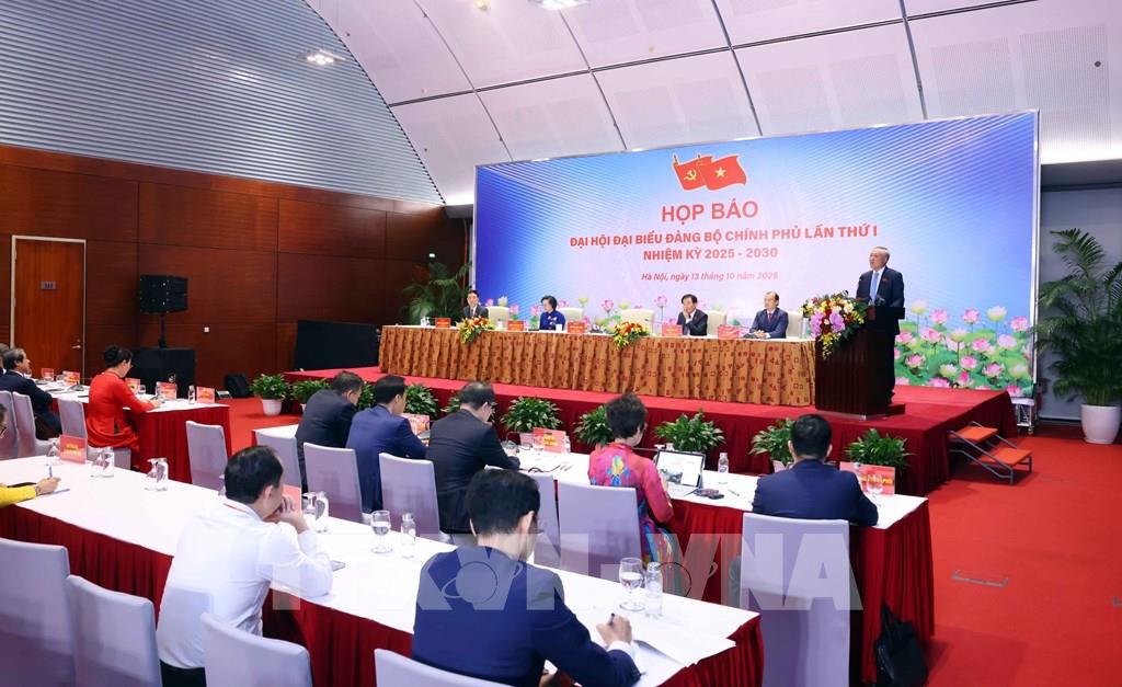 Chiều 13/10, tại Hà Nội, diễn ra họp báo thông tin về kết quả Đại hội đại biểu Đảng bộ Chính phủ lần thứ nhất, nhiệm kỳ 2025-2030.