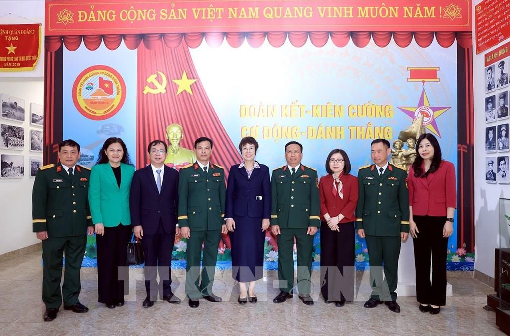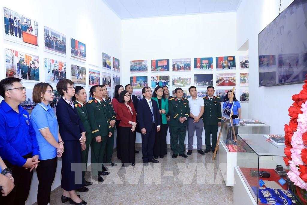 Lãnh đạo TTXVN và Sư đoàn Bộ binh 304 chụp ảnh chung tại Phòng truyền thống. Ảnh: Tuấn Anh - TTXVN