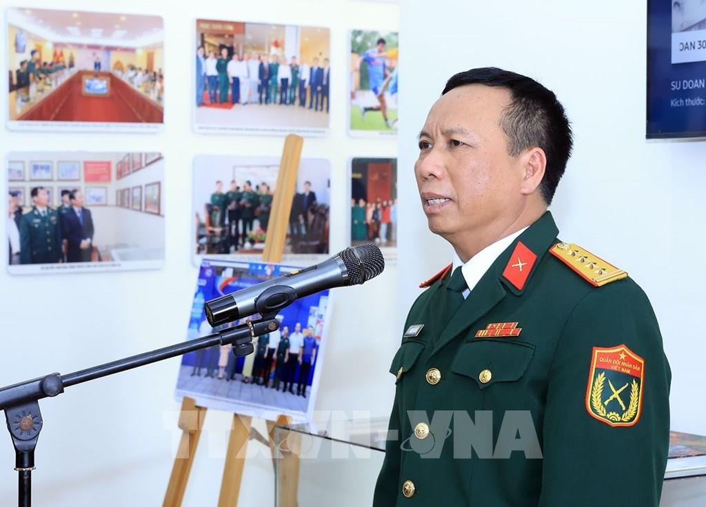 Đại tá Đinh Khắc Hùng, Sư đoàn trưởng Sư đoàn Bộ binh 304 (Quân khu 2) phát biểu. Ảnh: Tuấn Anh - TTXVN