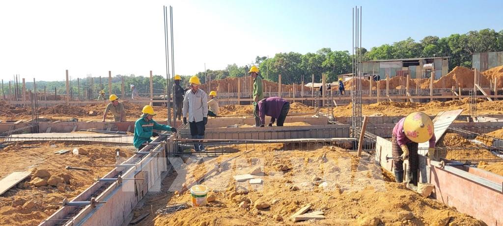Dự án thi công xây dựng Trường Phổ thông nội trú liên cấp Tiểu học và Trung học cơ sở tại xã Ia Púch, Gia Lai đang nỗ lực đẩy nhanh tiến độ. Ảnh: Hoài Nam – TTXVN