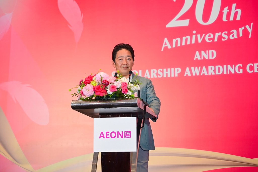 Ông Ishikawa Isamu, Phó Đại sứ, Đại sứ quán Nhật Bản tại Việt Nam đã gửi lời chúc mừng đến 96 sinh viên và chia sẻ, trong triết lý cơ bản của Tập đoàn AEON đã khẳng định, mục tiêu theo đuổi một xã hội hòa bình, tôn trọng con người và đóng góp cho cộng đồng địa phương, với khách hàng là trọng tâm. Quỹ Câu lạc bộ AEON 1% là một minh chứng tiêu biểu cho cam kết đóng góp xã hội bền bỉ đó.