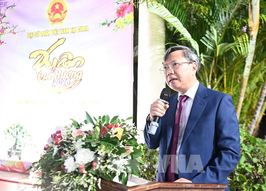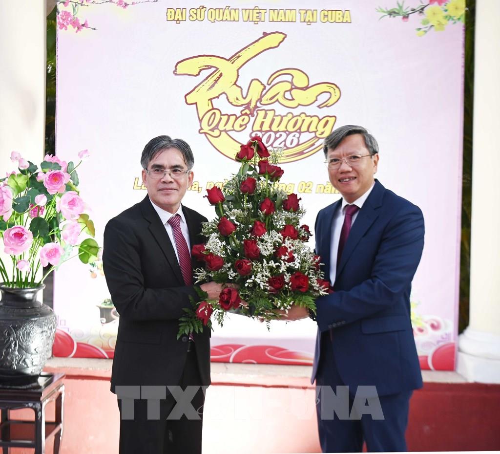 Theo phóng viên TTXVN tại La Habana, hòa chung không khí đón Tết cổ truyền của dân tộc, tối 14/2, Đại sứ quán Việt Nam tại Cuba đã tổ chức chương trình “Xuân Quê hương 2026” đón chào đón năm mới Bính Ngọ và tôn vinh tình đoàn kết, gắn bó của cộng đồng người Việt Nam tại Cuba.
