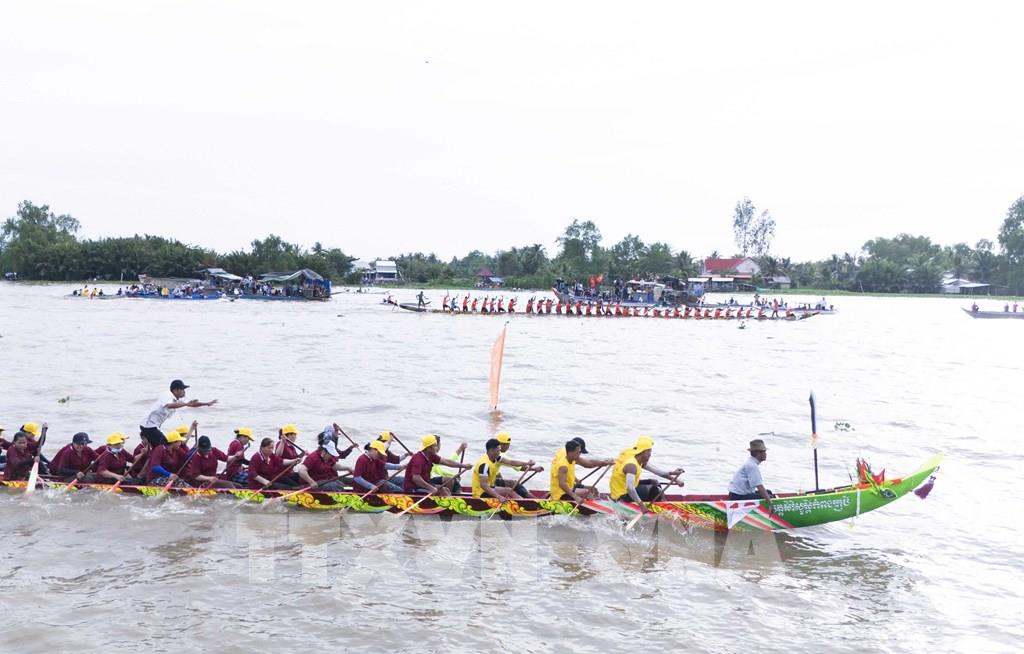 Đua ghe Ngo từ lâu đã gắn liền với sự hình thành và phát triển những bản sắc văn hóa của đồng bào dân tộc Khmer. Ảnh: Công Mạo - TTXVN