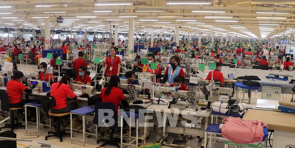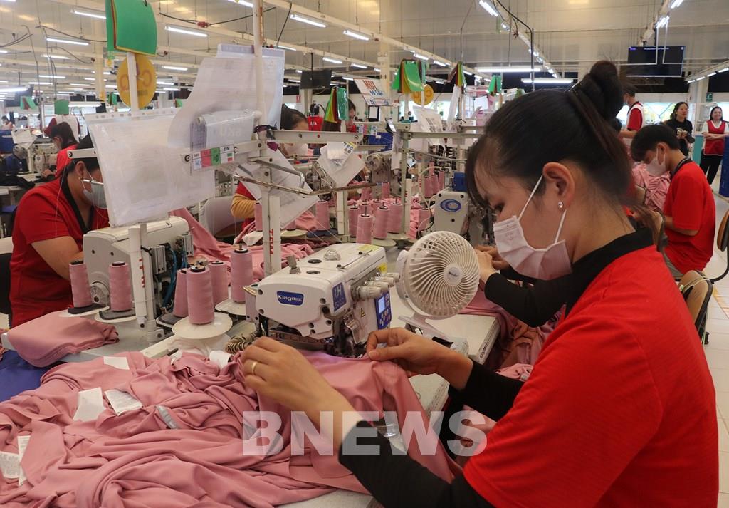 Công nhân Công ty TNHH NV APPAREL, Khu Công nghiệp Bình Hòa (tỉnh An Giang) sản xuất hàng may mặc xuất khẩu. Ảnh: Lê Huy Hải-TTXVN