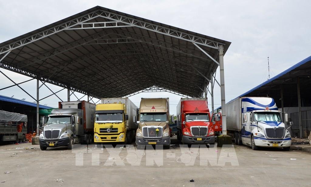 Xe chở hàng nông sản chuẩn bị xuất khẩu sang Campuchia qua Cửa khẩu Quốc gia Khánh Bình, tỉnh An Giang. Ảnh: Thanh Sang-TTXVN
