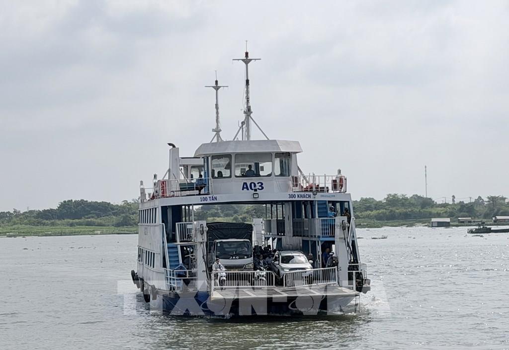 Phà An Hòa vận chuyển hành khách, phương tiện vượt qua sông Hậu từ phường Long Xuyên sang xã Hội An (An Giang). Ảnh: Thanh Sang-TTXVN