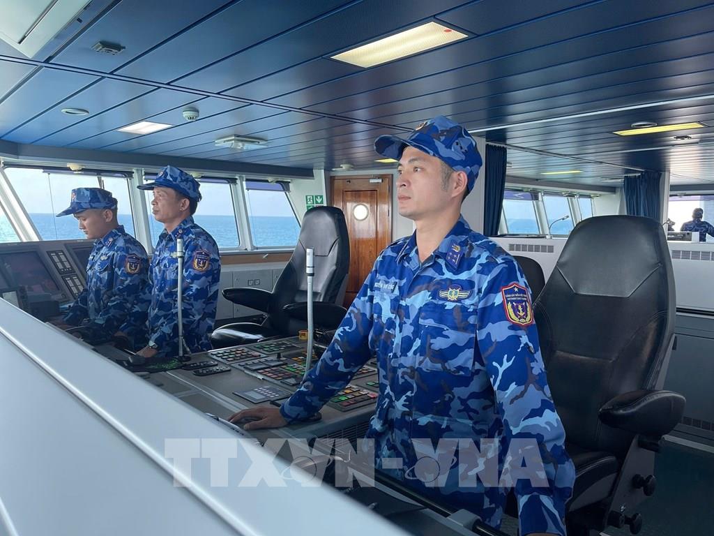 Cán bộ, chiến sĩ Tàu CSB 8005, tăng cường quan sát, nắm tình hình trên biển. Ảnh: TTXVN phát