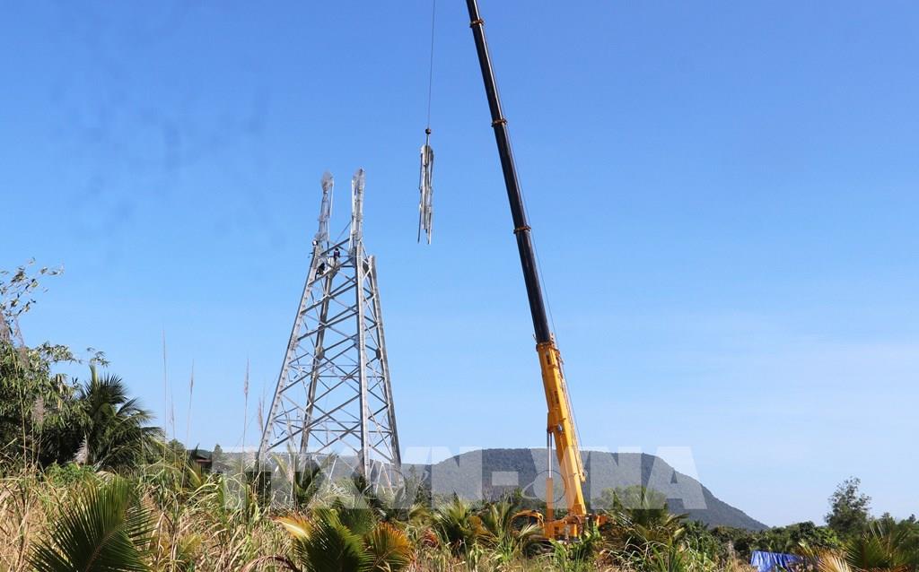 Thi công công trình điện trên địa bàn đặc khu Phú Quốc. Ảnh: Lê Huy Hải - TTXVN