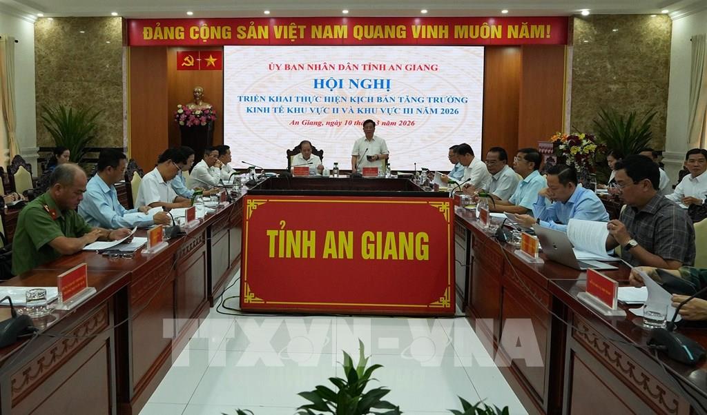 Đồng thời, tỉnh đẩy mạnh hoạt động xúc tiến thương mại nước ngoài phải thực chất và hiệu quả, đặc biệt chú trọng các thị trường tiềm năng như Halal, UAE, Thổ Nhĩ Kỳ và các kênh ngoại giao uy tín cao; khẩn trương hình thành trung tâm giới thiệu sản phẩm OCOP của An Giang tại đặc khu Phú Quốc để tận dụng cửa ngõ ra thế giới; xây dựng thương hiệu sản phẩm hàng hóa, doanh nghiệp của tỉnh mang tầm quốc gia, nhất là các doanh nghiệp quy mô lớn mạnh để dẫn dắt nền kinh tế. Ngoài ra, tỉnh sẽ ứng dụng khoa học công nghệ để xây dựng cửa khẩu thông minh tại Hà Tiên, Tịnh Biên, Vĩnh Xương và Khánh Bình, nhằm giảm bớt thời gian và chi phí cho doanh nghiệp; thúc đẩy kinh tế biên mậu, giao thương qua biên giới Campuchia. Cùng đó, tỉnh yêu cầu Ngân hàng Nhà nước và các ngân hàng thương mại hỗ trợ vốn cho sản xuất kinh doanh của doanh nghiệp. Kịch bản tăng trưởng kinh tế (GRDP) năm 2026 của An Giang đặt mục tiêu đạt từ 10,71% (phấn đấu trên 11%) năm 2026, trong đó, khu vực II 22,49%, khu vực III 11,36%. Tỉnh đổi mới mạnh mẽ, toàn diện trong quản lý kinh tế, đáp ứng yêu cầu phát triển trong tình hình mới; đẩy mạnh chuyển dịch cơ cấu kinh tế gắn với đổi mới mô hình phát triển kinh tế, công nghiệp hóa, hiện đại hóa lấy khoa học công nghệ, đổi mới sáng tạo, chuyển đổi số làm động lực chính; tập trung tối đa nguồn lực để đầu tư, từng bước hoàn thiện cơ sở hạ tầng, nhất là hạ tầng giao thông, cảng biển để thúc đẩy phát triển du lịch, thương mại và dịch vụ, tăng cường giao lưu kinh tế, đẩy mạnh liên kết vùng.Theo Sở Công Thương An Giang, với mục tiêu đổi mới mô hình tăng trưởng công nghiệp, tái cơ cấu nội ngành công nghiệp, gia tăng giá trị ngành công nghiệp, tạo đột phá tăng trưởng cho khu vực II, gia tăng tỷ trọng đóng góp của ngành công nghiệp trong GRDP của tỉnh. Theo đó, giá trị sản xuất công nghiệp năm 2026 hơn 134.382 tỷ đồng, tốc độ tăng giá trị sản xuất công nghiệp đạt 13,84%; tổng mức bán lẻ hàng hóa và doanh thu dịch vụ hơn 385.500 tỷ đồng; kim ngạch xuất khẩu hàng hóa đạt 2.753 triệu USD.