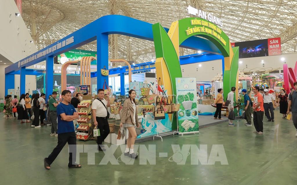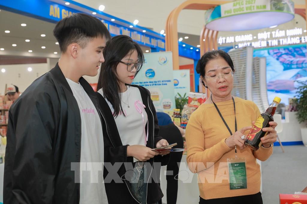 Nhiều người dân và du khách ấn tượng với gian trưng bày, quảng bá sản phẩm đặc trưng, tiêu biểu của tỉnh An Giang. Ảnh: Phan Phương – TTXVN