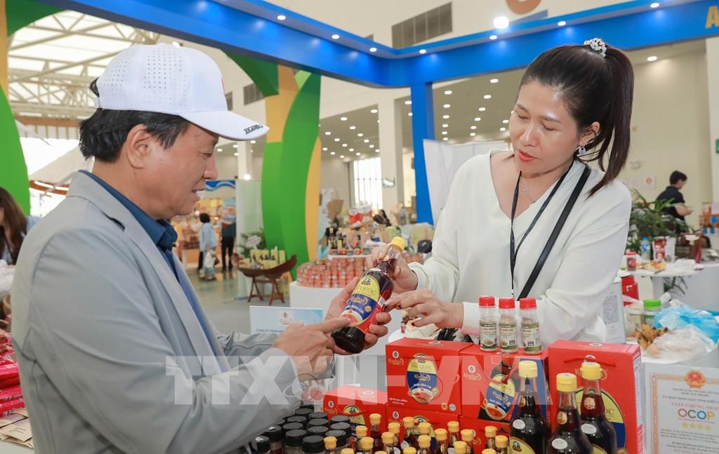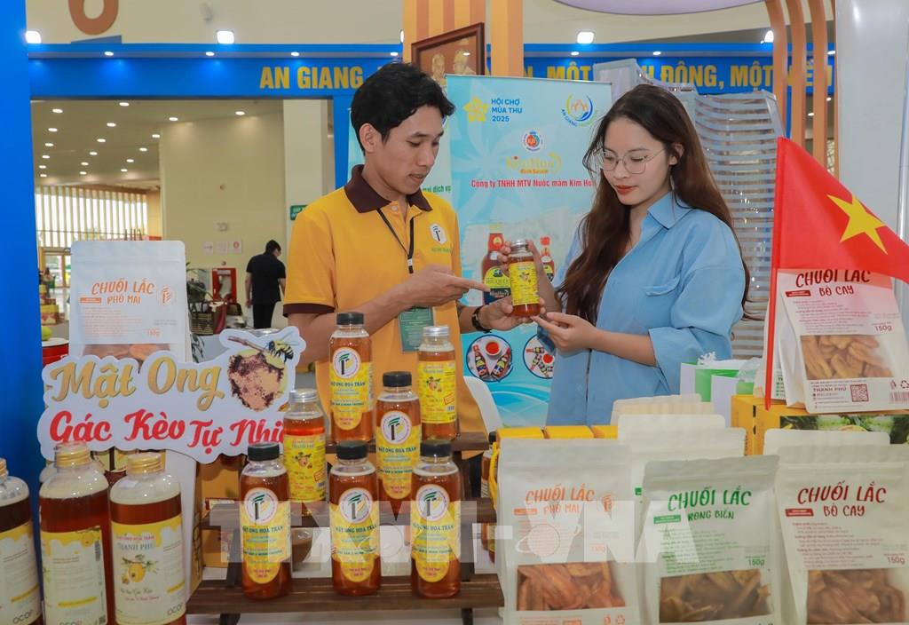 Trên 200 sản phẩm với hơn 90% đạt tiêu chuẩn OCOP được An Giang mang đến Hội chợ mùa Thu 2025. Ảnh: Phan Phương – TTXVN
