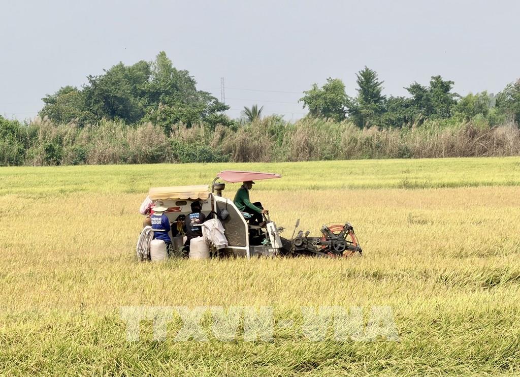 Thu hoạch lúa vụ Đông Xuân 2025–2026 trên địa bàn phường Mỹ Thới, tỉnh An Giang. Ảnh: Thanh Sang - TTXVN