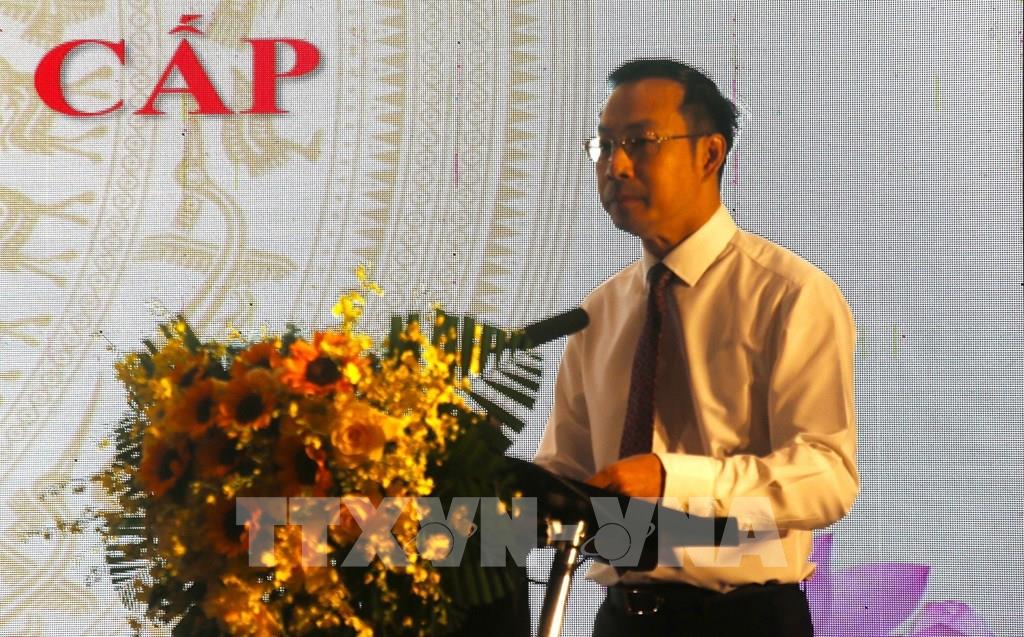 Ông Nguyễn Thanh Nhàn, Chủ tịch HĐND tỉnh An Giang, phát biểu tại Hội nghị. Ảnh: Lê Huy Hải - TTXVN