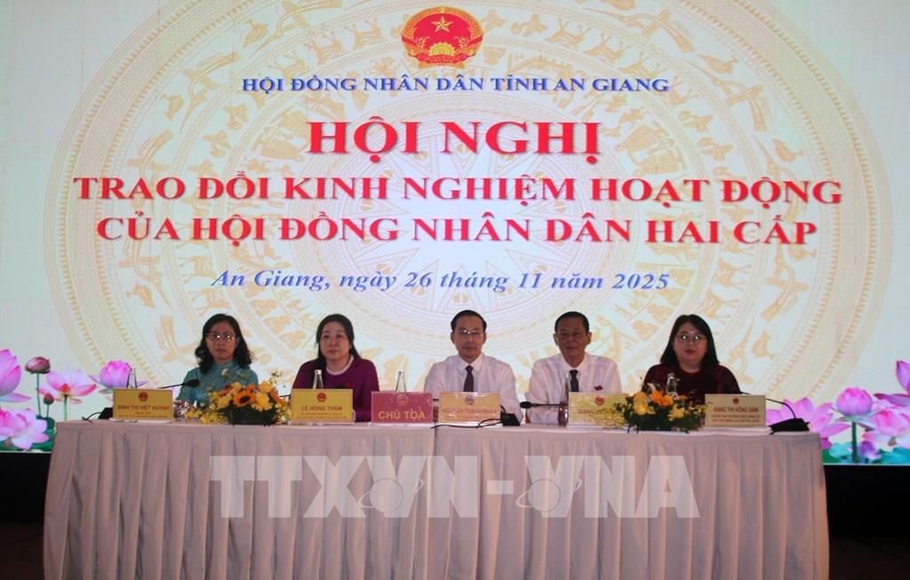 HĐND hai cấp tổ chức 111 cuộc giám sát đi vào chiều sâu và bám sát thực tiễn. Công tác tiếp xúc cử tri và tiếp công dân được duy trì nền nếp. Các cơ quan tổ chức 567 cuộc tiếp xúc cử tri với sự tham dự của gần 35.000 cử tri, tiếp nhận 3.888 ý kiến, kiến nghị, tiếp 248 lượt công dân và xử lý 156 đơn thư khiếu nại, tố cáo. Những nỗ lực này, đặc biệt tại các cơ quan dân cử ở Kiên Hải, Phú Quốc, Tô Châu, Rạch Giá, Long Xuyên và xã, phường khác khẳng định vai trò là cơ quan quyền lực Nhà nước tại địa phương, góp phần xây dựng chính quyền cơ sở vững mạnh, gần dân hơn. Mặc dù đạt được những thành tựu quan trọng, quá trình chuyển đổi sang mô hình chính quyền địa phương hai cấp, hoạt động của HĐND bộc lộ nhiều khó khăn, vướng mắc. Cụ thể, thể chế chuyển tiếp còn nhiều điểm chưa đồng bộ, việc ban hành văn bản hướng dẫn dưới luật còn chậm, gây lúng túng trong thực hiện tại địa phương. Đa số đại biểu HĐND hoạt động theo hình thức kiêm nhiệm, do đó thời gian dành cho hoạt động HĐND còn hạn chế. Nhân sự phần lớn được chỉ định, chưa có nhiều kinh nghiệm, dẫn đến công tác điều hành và phối hợp còn chậm. Kinh phí hoạt động của HĐND cấp xã và đặc khu còn hạn chế... Phát biểu tại hội nghị, Chủ tịch HĐND tỉnh An Giang Nguyễn Thanh Nhàn nhấn mạnh, hội nghị không chỉ là diễn đàn trao đổi kinh nghiệm mà còn là dịp tổng kết thực tiễn bước đầu triển khai mô hình mới; thẳng thắn chỉ ra khó khăn, hạn chế và bất cập; chia sẻ cách làm hay, mô hình tốt; thống nhất giải pháp nâng cao chất lượng hoạt động của HĐND và định hướng cho giai đoạn phát triển mới của tỉnh. Hội nghị là cơ hội để HĐND tỉnh tiếp thu đầy đủ kiến nghị, đề xuất từ cơ sở, từ đó, hoàn thiện cơ chế phối hợp, cải tiến phương thức hoạt động; chuẩn bị tốt hơn cho bầu cử đại biểu Quốc hội và HĐND các cấp nhiệm kỳ 2026 - 2031, gắn với thực hiện mục tiêu phát triển lớn của tỉnh trong giai đoạn tới.Tại hội nghị, đại biểu tham luận, trao đổi, chia sẻ kinh nghiệm thực tiễn trong hoạt động HĐND cấp xã và đặc khu; trong đó tập trung thảo luận nhóm vấn đề trọng tâm nhằm đổi mới, nâng cao hiệu quả hoạt động thời gian tới. Cụ thể là kiến nghị cấp trên sớm ban hành văn bản hướng dẫn chi tiết; xem xét điều chỉnh định mức kinh phí hoạt động của HĐND cấp xã, bổ sung kinh phí phục vụ chuyển đổi số và phụ cấp cho đại biểu. UBND cấp xã cần tăng cường thu thập số liệu, đánh giá tác động, phân tích lựa chọn chính sách trước khi trình dự thảo nghị quyết.
