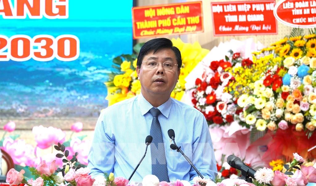 Bí thư Tỉnh ủy An Giang Nguyễn Tiến Hải phát biểu chỉ đạo Đại hội. Ảnh: Văn Sĩ - TTXVN