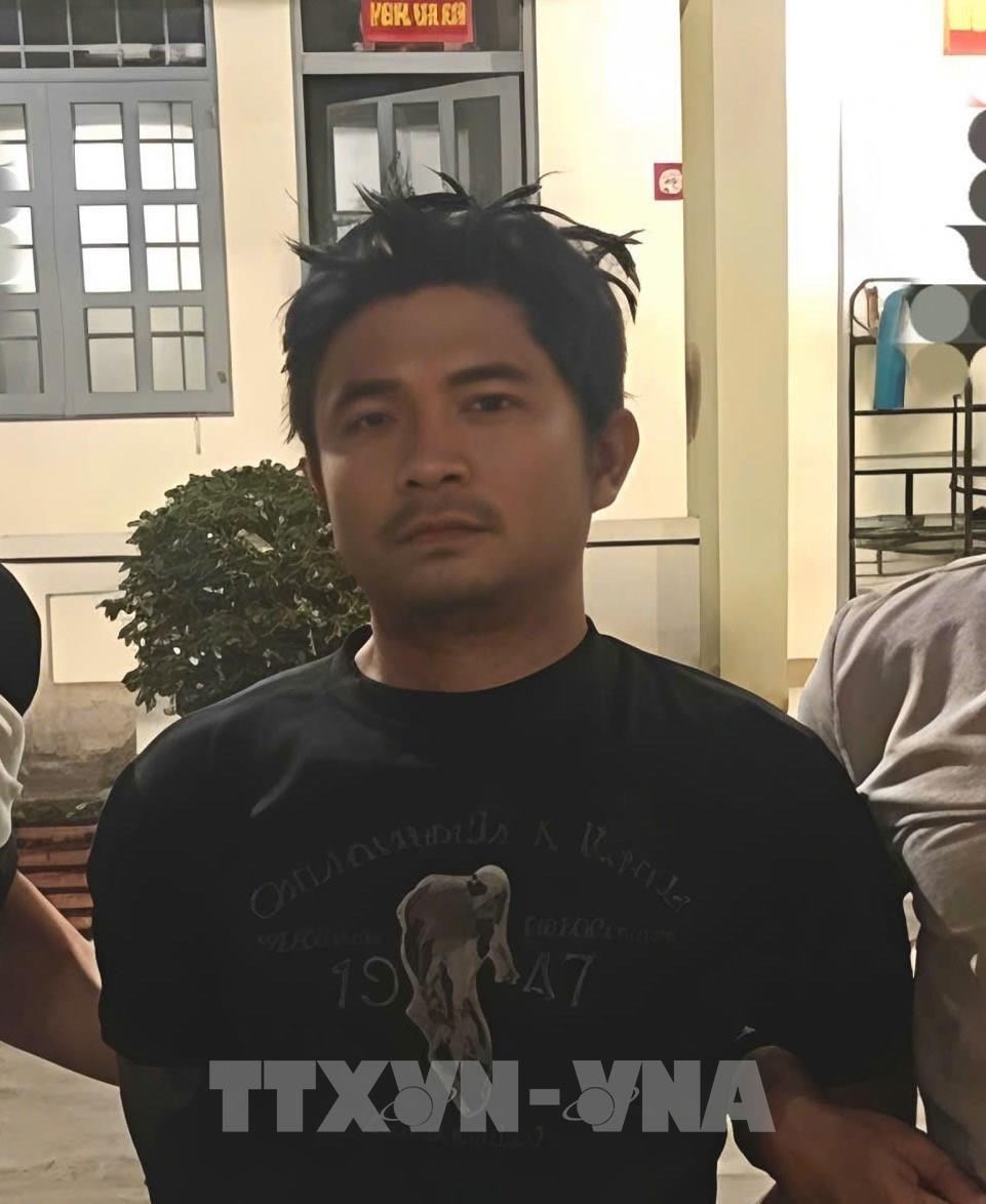 Đối tượng có Quyết định truy nã Lê Quyết Tiến bị cơ quan Công an bắt giữ. Ảnh: TTXVN phát