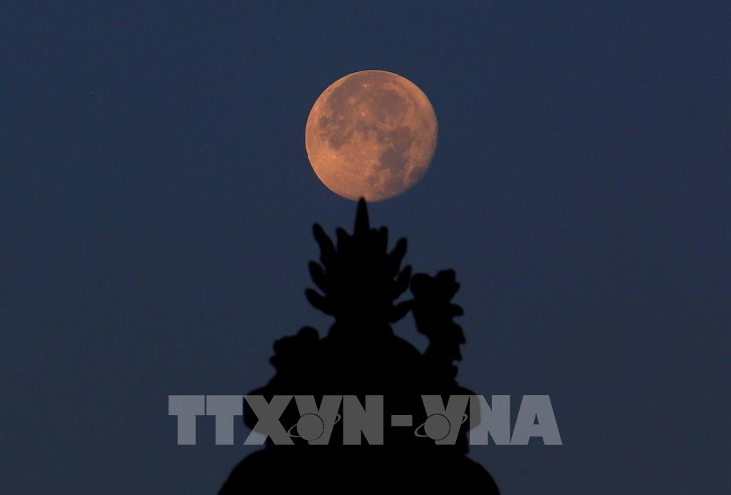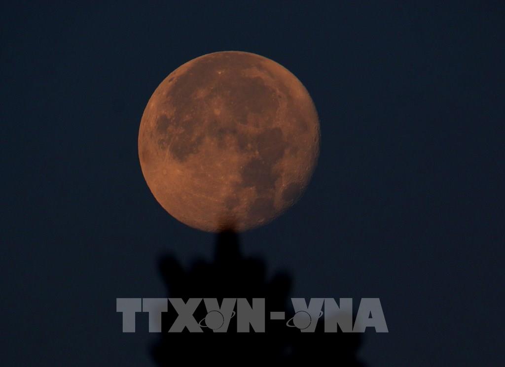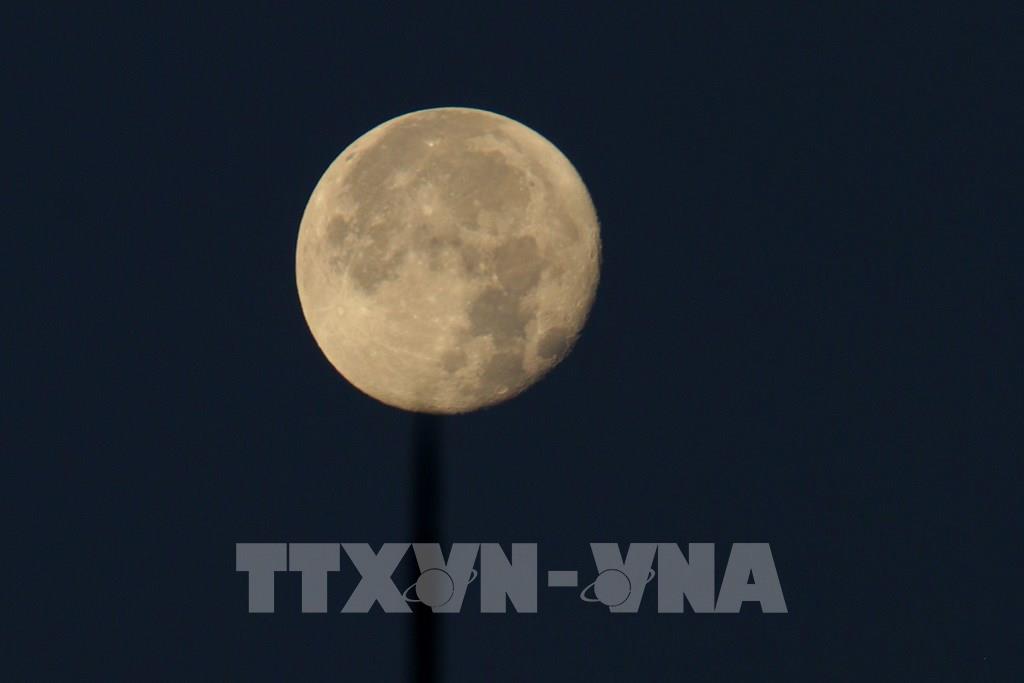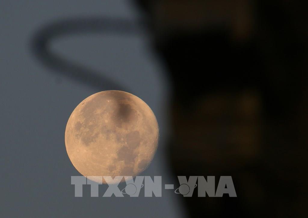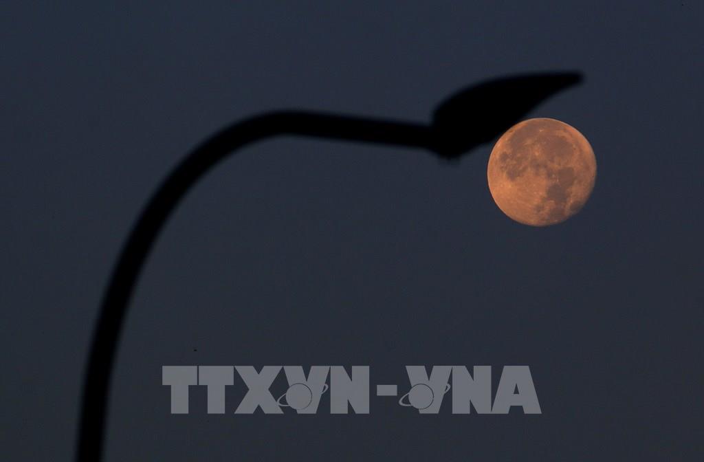 Ánh trăng lặn muộn nhìn từ phường Vị Tân, thành phố Cần Thơ. Ảnh: Duy Khương – TTXVN