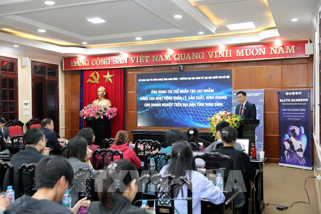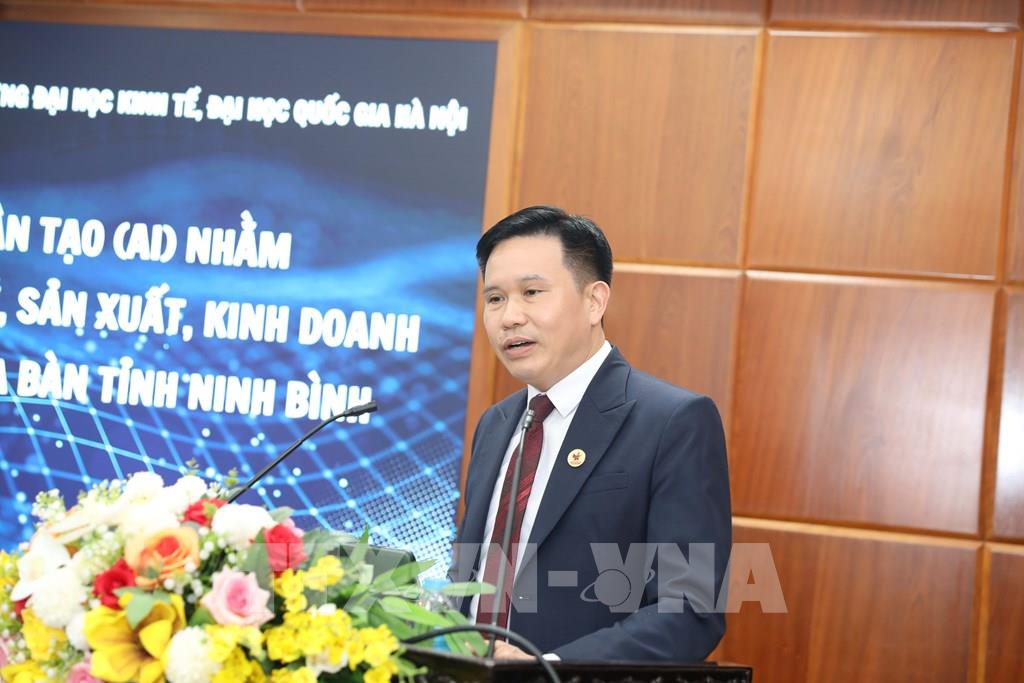 Ông Nguyễn Đức Cường, Chủ tịch hội doanh nhân trẻ tỉnh Ninh Bình, phát biểu tại buổi tập huấn. Ảnh: Thanh Tuấn - TTXVN