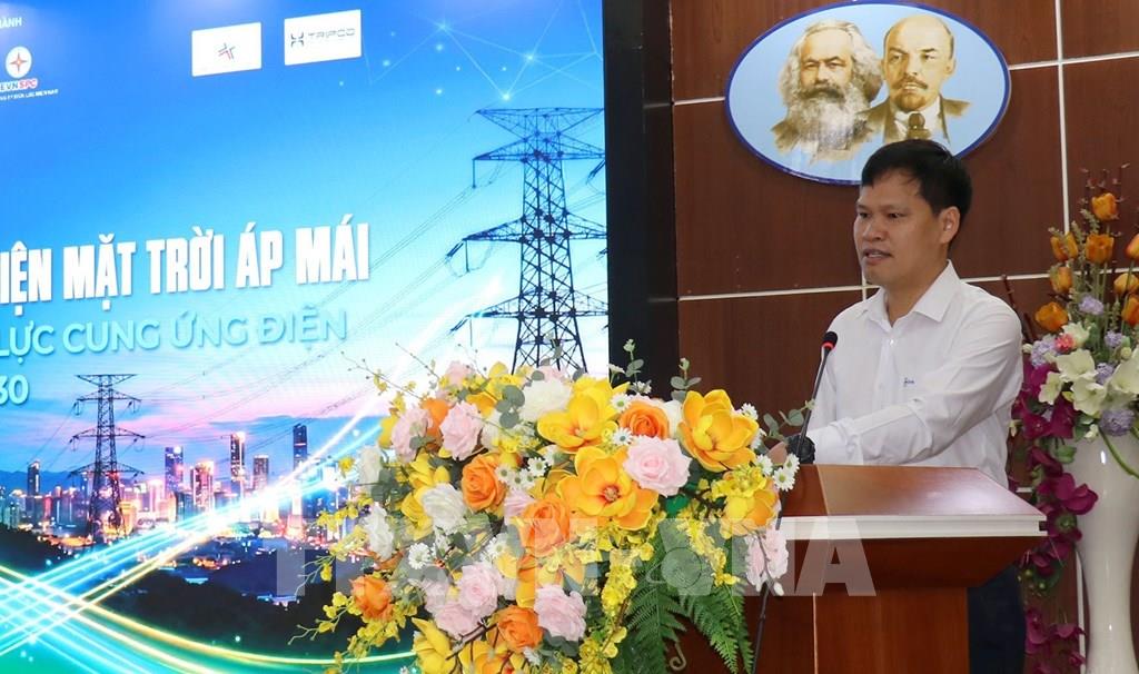 Ông Bùi Quốc Hoan, Phó Tổng Giám đốc Tổng Công ty Điện lực miền Nam (EVNSPC) phát biểu tại tọa đàm. Ảnh: Thanh Vũ - TTXVN