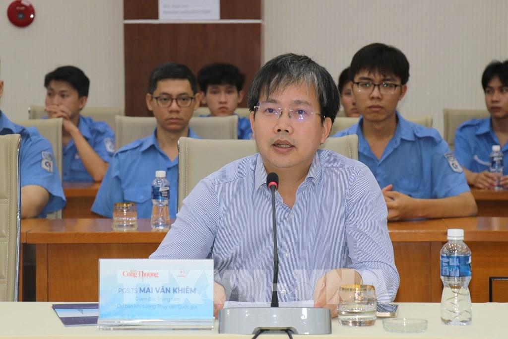 Phó Giáo sư, Tiến sĩ Mai Văn Khiêm, Giám đốc Trung tâm Dự báo Khí tượng Thủy văn Quốc gia phát biểu tại tọa đàm. Ảnh: Thanh Vũ - TTXVN