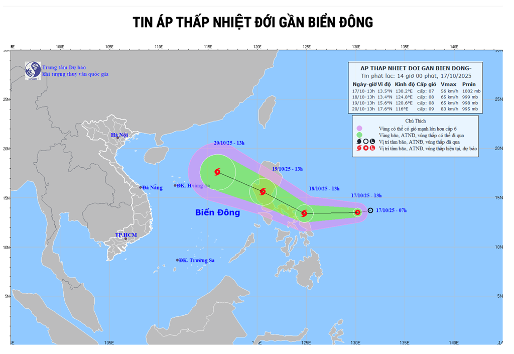 Chiều 17/10, Ban Chỉ đạo Phòng thủ dân sự Quốc gia ban hành văn bản số 17//BCĐ-BNNMT về việc chủ động ứng phó với áp thấp nhiệt đới gần Biển Đông có khả năng mạnh lên thành bão.