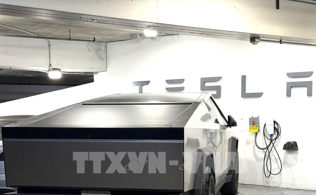 Một trạm sạc của Tesla bên trong tòa nhà ở thành phố Chicago. Ảnh: Ngọc Quang - PV TTXVN tại Mỹ