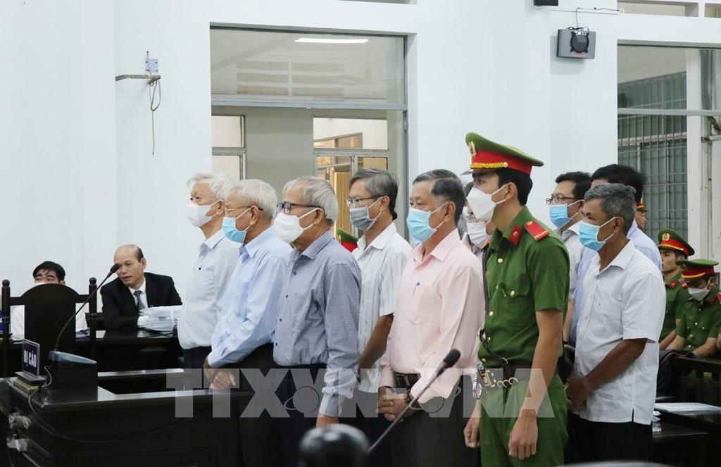 Có 13 bị cáo trong vụ án, trong đó có 3 bị cáo nguyên là lãnh đạo UBND tỉnh Khánh Hòa, gồm: Nguyễn Chiến Thắng và Lê Đức Vinh, nguyên Chủ tịch UBND tỉnh; Đào Công Thiên, nguyên Phó Chủ tịch UBND tỉnh. Ảnh: Tiên Minh - TTXVN