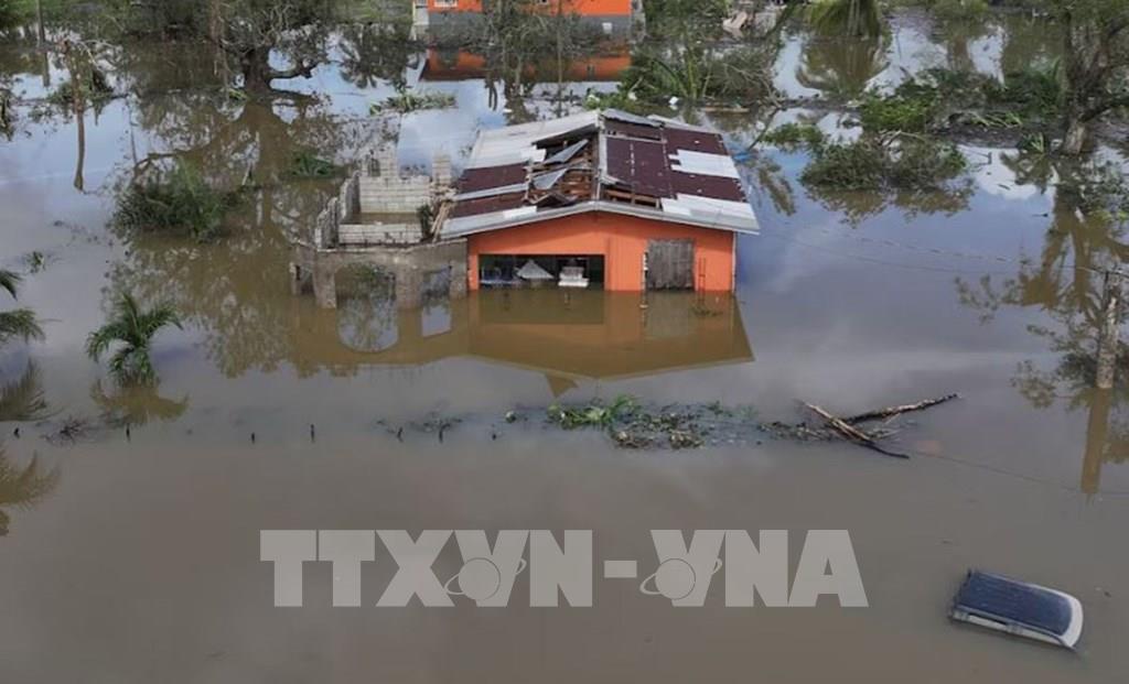 Bão Melissa kèm mưa lớn nhấn chìm nhiều ngôi nhà trong biển nước ở Jamaica. Ảnh: Reuters/TTXVN