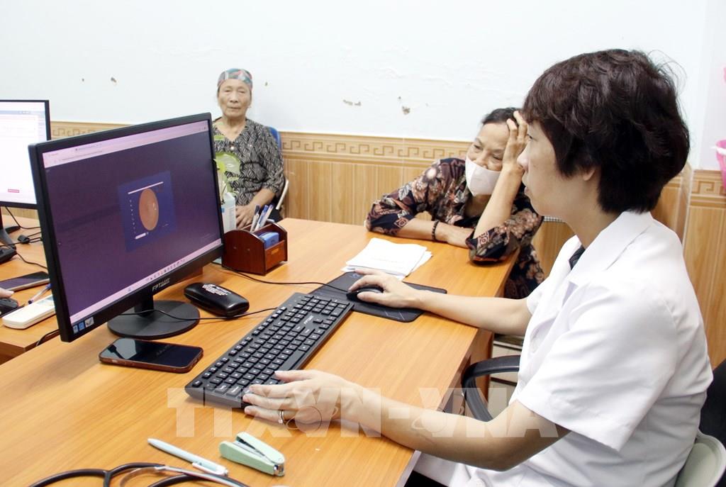 Bác sĩ Khoa khám bệnh, Trung tâm Y tế Tiên Du (Bắc Ninh), xem kết quả chuẩn đoán hình ảnh của bệnh nhân qua phần mềm bệnh án điện tử. Ảnh: Đồng Thúy-TTXVN