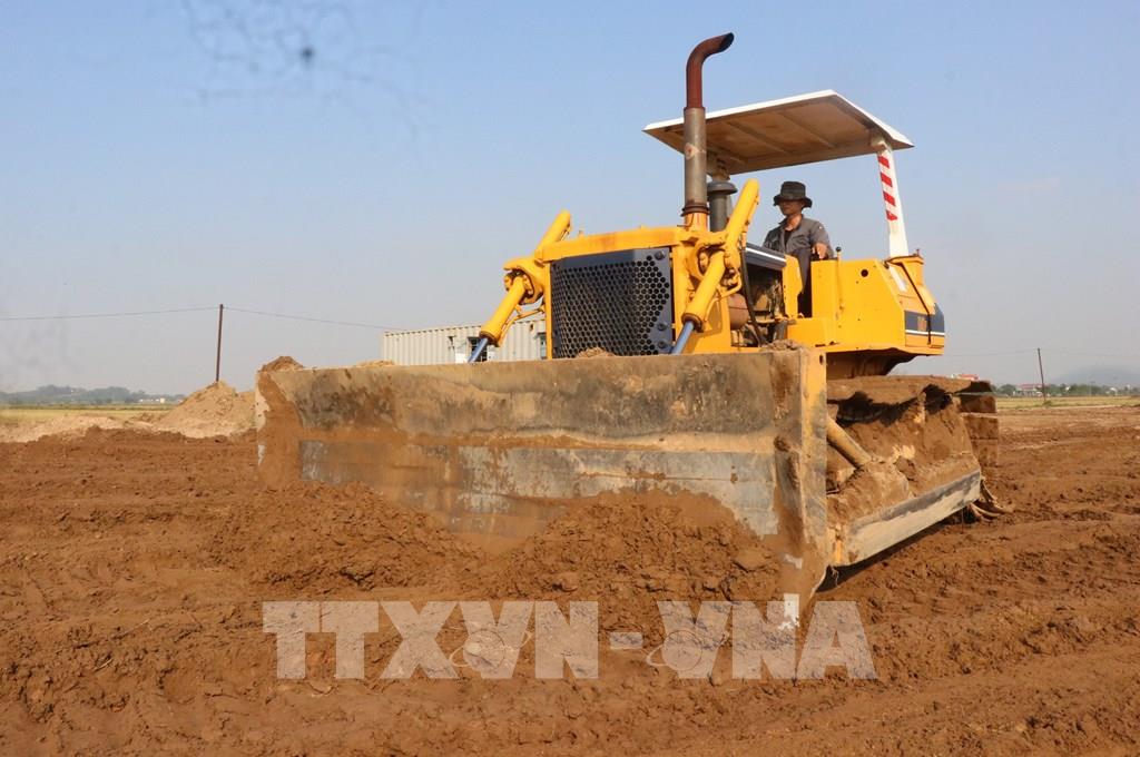 Máy ủi được huy động san lấp mặt bằng Dự án đầu tư xây dựng Khu công nghiệp Quế Võ II – Giai đoạn 2 tại xã Phù Lãng, tỉnh Bắc Ninh. Ảnh: Thanh Thương- TTXVN