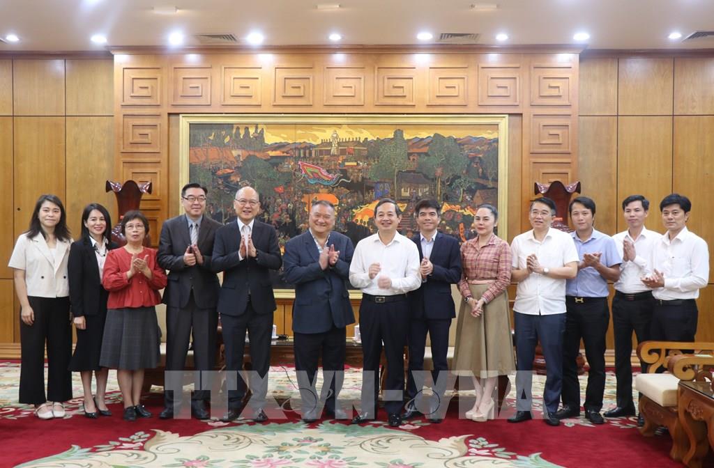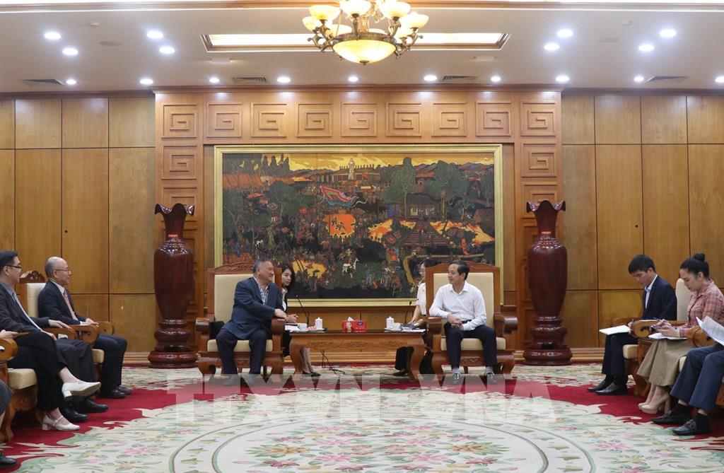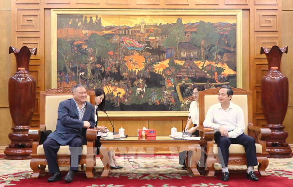 Chủ tịch UBND tỉnh Bắc Ninh Phạm Hoàng Sơn (phải) tiếp ông Lin Wu Kun, Tổng Giám đốc điều hành Công ty TNHH Phát triển nhà đất Shun-Far. Ảnh: Thanh Thương- TTXVN