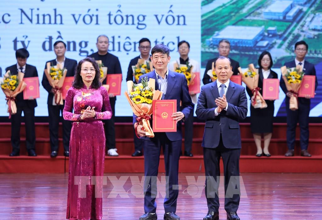 Tại hội nghị, lãnh đạo tỉnh Bắc Ninh đã trao Quyết định chấp thuận chủ trương đầu tư cho 5 dự án hạ tầng với tổng vốn khoảng 19.000 tỷ đồng; trao Giấy chứng nhận đăng ký đầu tư cấp mới cho 11 doanh nghiệp FDI và Giấy chứng nhận đăng ký đầu tư điều chỉnh tăng vốn cho 13 doanh nghiệp FDI trong các khu công nghiệp, với tổng vốn đăng ký trên 1,03 tỷ USD.