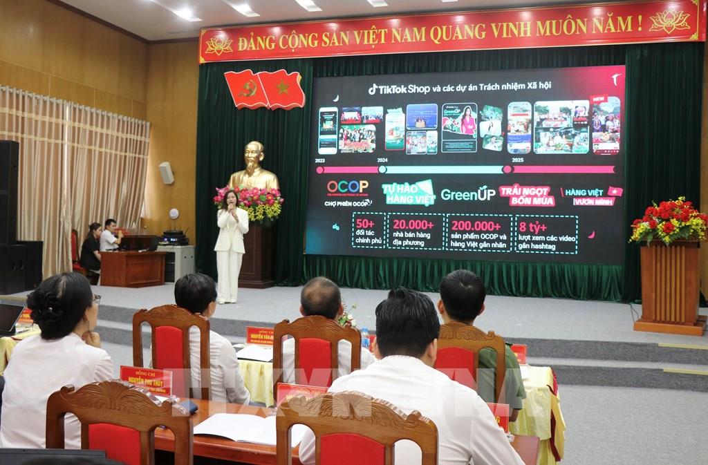 Đại diện sàn thương mại điện tử chia sẻ cách bán hàng. Ảnh: Thanh Thương- TTXVN