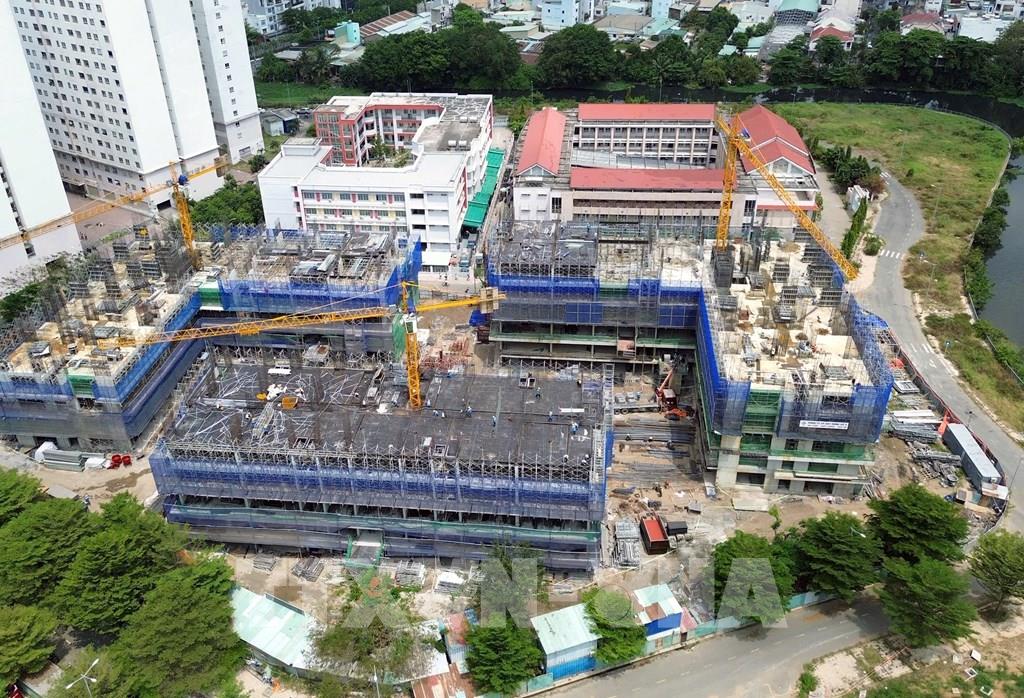 Dự án nhà ở xã hội số 4 Phan Chu Trinh, phường Bình Thạnh, TP. Hồ Chí Minh, tích cực thi công. Ảnh: Thanh Vũ-TTXVN