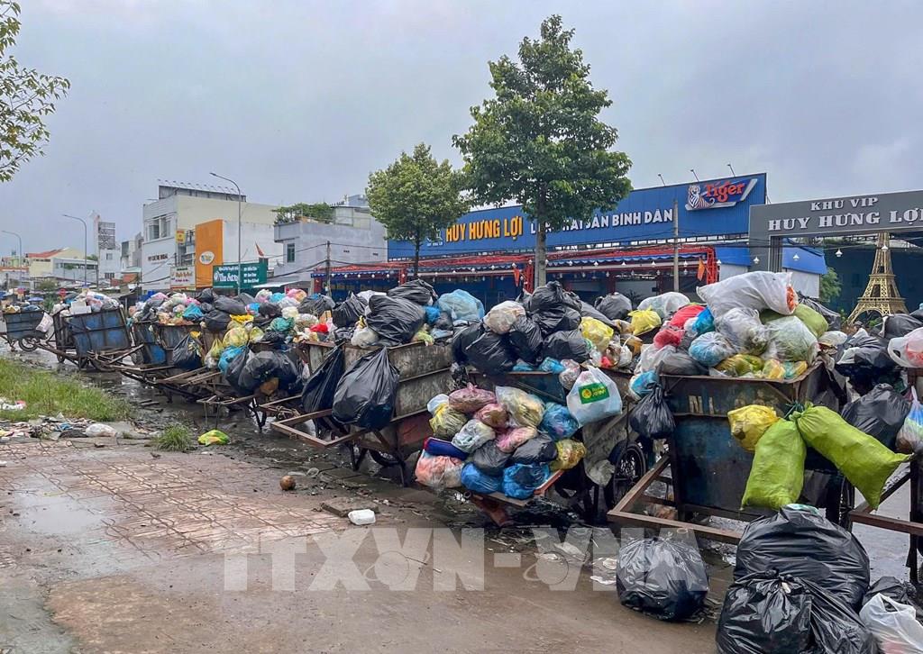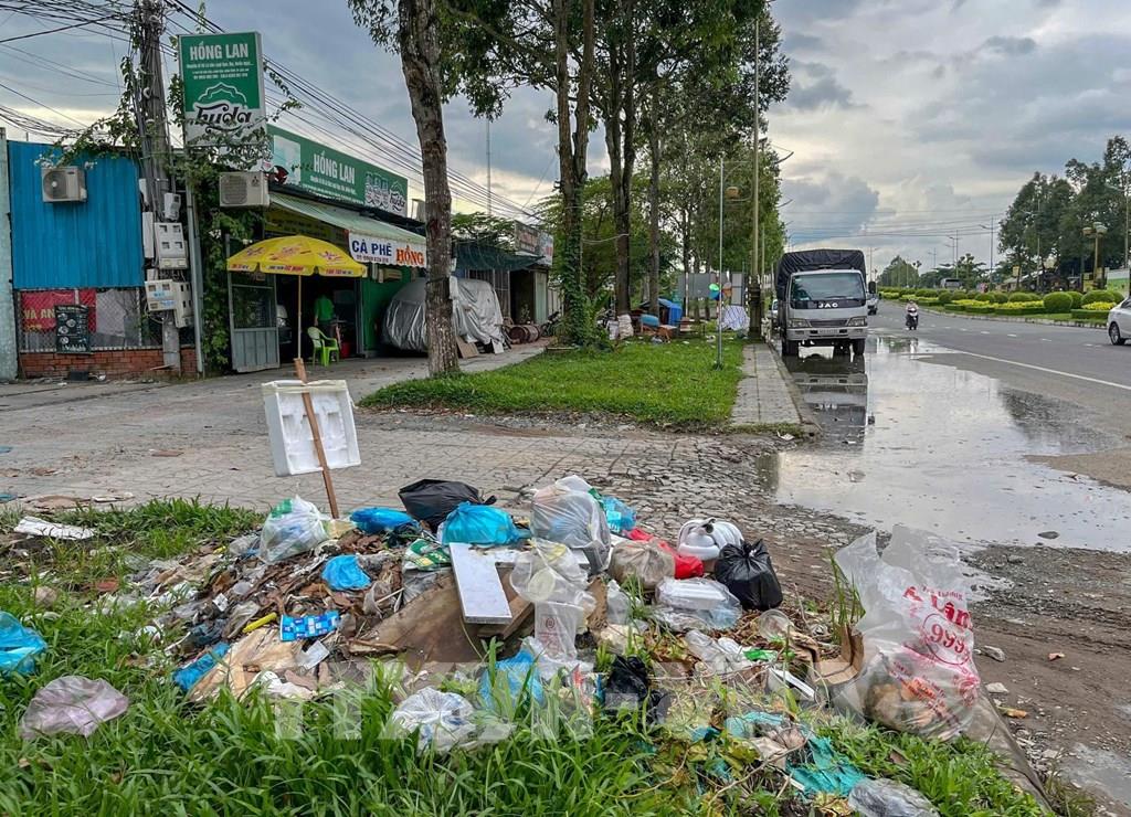 Một bãi rác không được thu gom triệt để trên đường Võ Văn Kiệt, hướng ra sân bay quốc tế Cần Thơ. Ảnh: Thanh Liêm - TTXVN