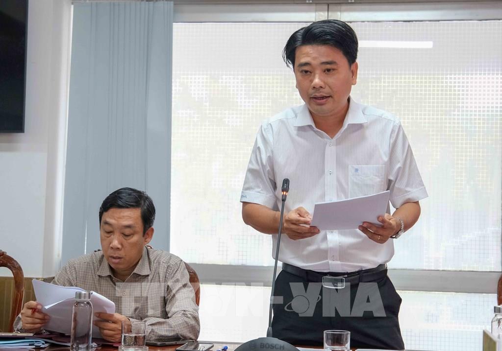 Phó Giám đốc Sở Xây dựng thành phố Cần Thơ Nguyễn Đăng Khoa báo cáo công tác quản lý đô thị tại cuộc họp. Ảnh: Thanh Liêm - TTXVN