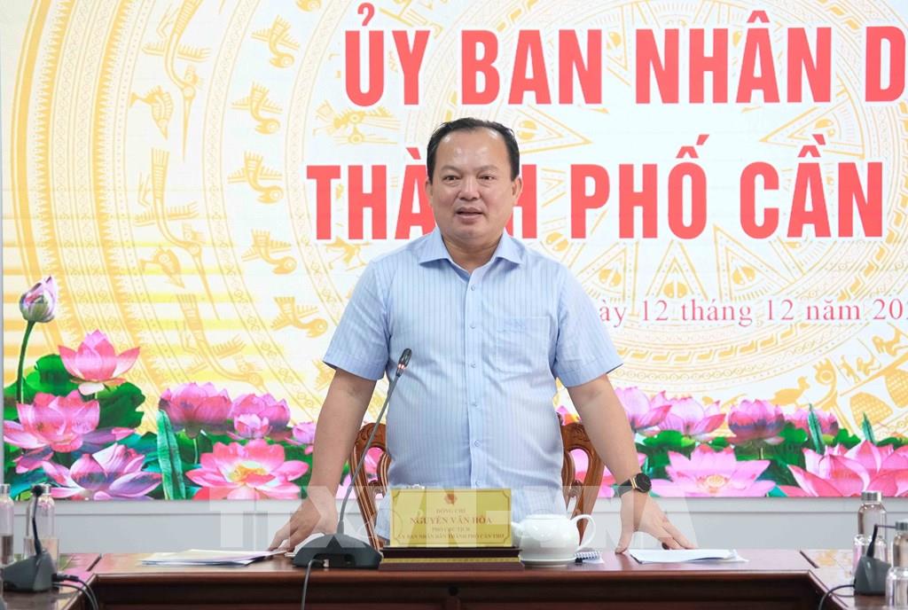 Phó Chủ tịch UBND thành phố Cần Thơ Nguyễn Văn Hòa phát biểu tại cuộc họp. Ảnh: Thanh Liêm - TTXVN