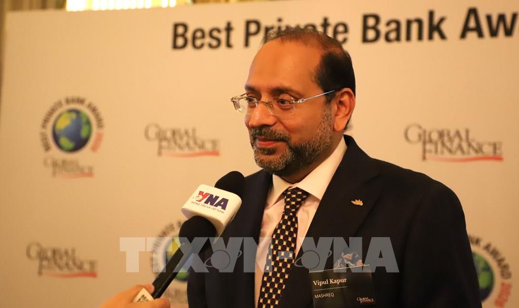 Ông Vipul Kapur, Giám đốc Private Banking của Mashreq Bank (Các Tiểu vương quốc Arab Thống nhất-UAE) trả lời phỏng vấn của TTXVN. Ảnh: Hữu Tiến - PV TTXVN