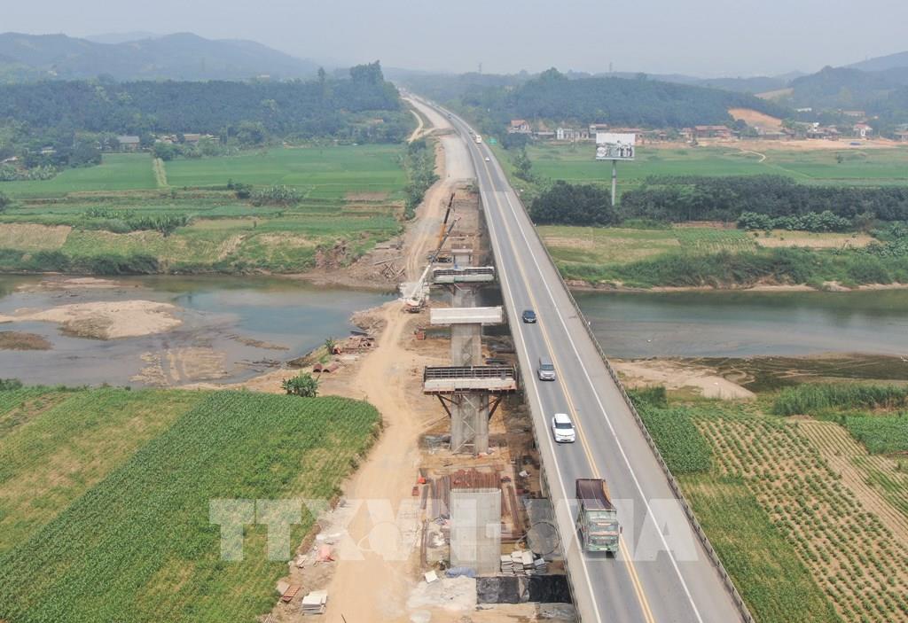 Dự án xây dựng mở rộng đoạn Yên Bái - Lào Cai thuộc tuyến cao tốc Nội Bài - Lào Cai có chiều dài hơn 121Km (từ Km123+080 - Km244+155), tổng mức đầu tư gần 7.700 tỷ đồng. Ảnh: Tuấn Anh - TTXVN