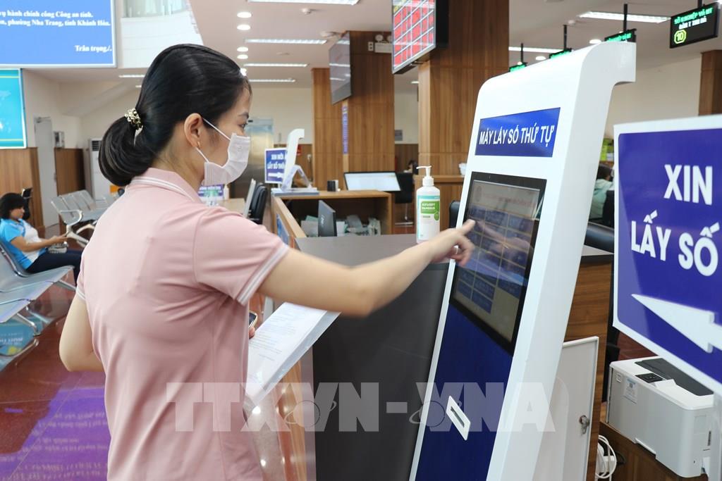 Người dân bấm số thứ tự để làm thủ tục tại Trung tâm phục vụ hành chính công tỉnh Khánh Hòa, phố Hoàng Hoa Thám, phường Nha Trang. Ảnh: Nguyễn Thành – TTXVN