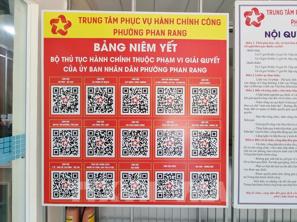Bộ mã QRCode được niêm yết công khai các thủ tục hành chính tại phường Phan Rang (Khánh Hòa), giúp người dân dễ dàng tra cứu. Ảnh: Nguyễn Thành – TTXVN