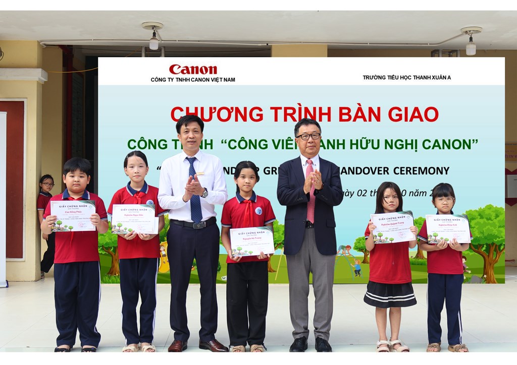 Năm 2025, Canon Việt Nam đã đầu tư với tổng trị giá hơn 350 triệu đồng xây dựng công trình công viên xanh nhỏ tại trường tiểu học Thanh Xuân A, xã Nội Bài, Hà Nội. Công viên xanh nhỏ này, không chỉ giúp tăng tỷ lệ cây xanh, tạo bóng mát và không khí trong lành mà còn mở ra một không gian học tập sáng tạo để học sinh, giáo viên thực hiện các hoạt động hữu ích khác như thư viện ngoài trời, tổ chức những buổi học thực tế về thế giới thực vật, khơi dậy tình yêu thiên nhiên cho các em học sinh…