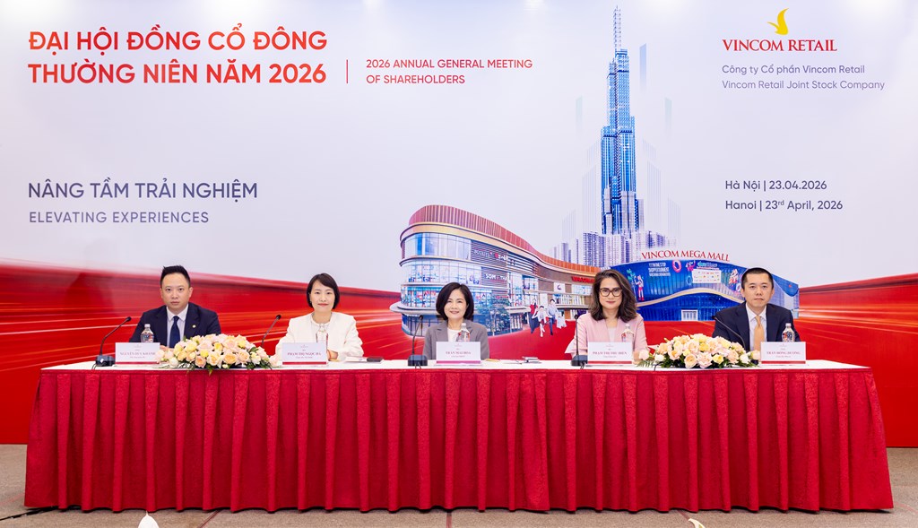 Sáng 23/4, Công ty cổ phần Vincom Retail (mã chứng khoán: VRE) tổ chức Đại hội đồng cổ đông thường niên 2026, thông qua phương án chia cổ tức tiền mặt gần 2.300 tỷ đồng và kế hoạch tăng trưởng trong bối cảnh thị trường bán lẻ tiếp tục khởi sắc.