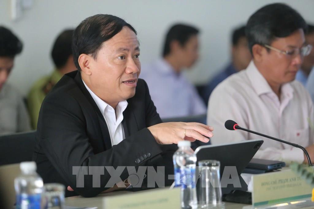 Chủ tịch UBND tỉnh Phạm Anh Tuấn phát biểu tại buổi làm việc. Ảnh: Hồng Điệp - TTXVN
