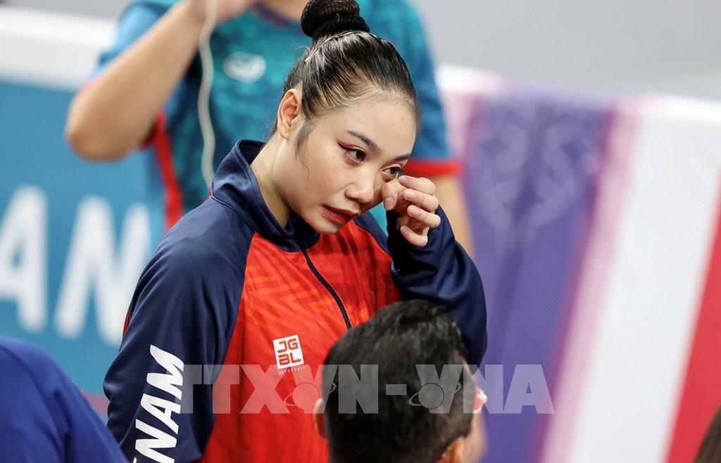 VĐV Trần Hà Vi xúc động bật khóc khi giành HCV. Ảnh: Hoàng Linh - TTXVN
